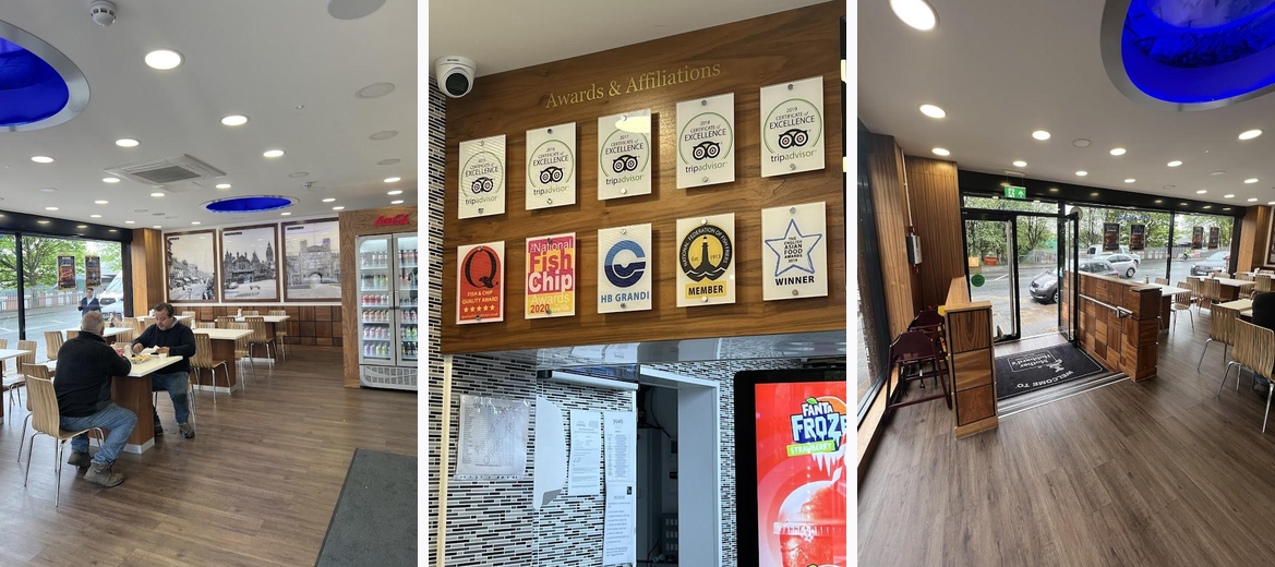 Very very clean shop and ive drove past this place 1000 times and I'll be stopping next time the service was brilliant alina very friendly and the people behind too the fish is very crispy in the and soft inside chips lovely highly recommended 😀